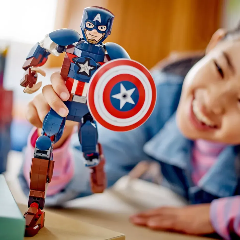 - Ils pourront construire leur propre figurine Captain America et s’amuser avec pour recréer les scènes les plus palpitantes des films. Captain America peut libérer ses mains pour combattre les méchants en fixant le bouclier sur son dos.