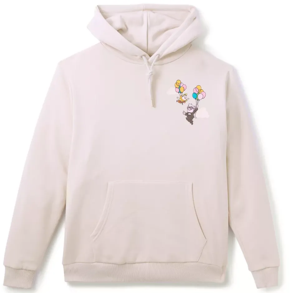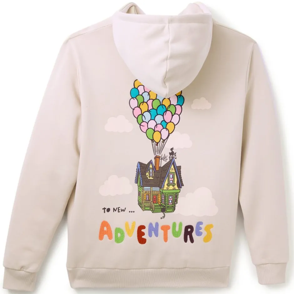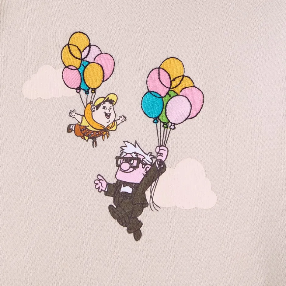Préparez-vous à vivre de grandes aventures sans pour autant compromettre votre style avec ce haut à capuche Là-Haut ! Carl et Russell sont déjà en route, flottant dans le ciel suspendus à leurs fidèles ballons sur le devant du haut. Dans le dos, la maison emblématique du film s’élève au-dessus d’une inscription colorée. Idéal pour les fans qui mettent du coeur dans toutes leurs aventures du quotidien !