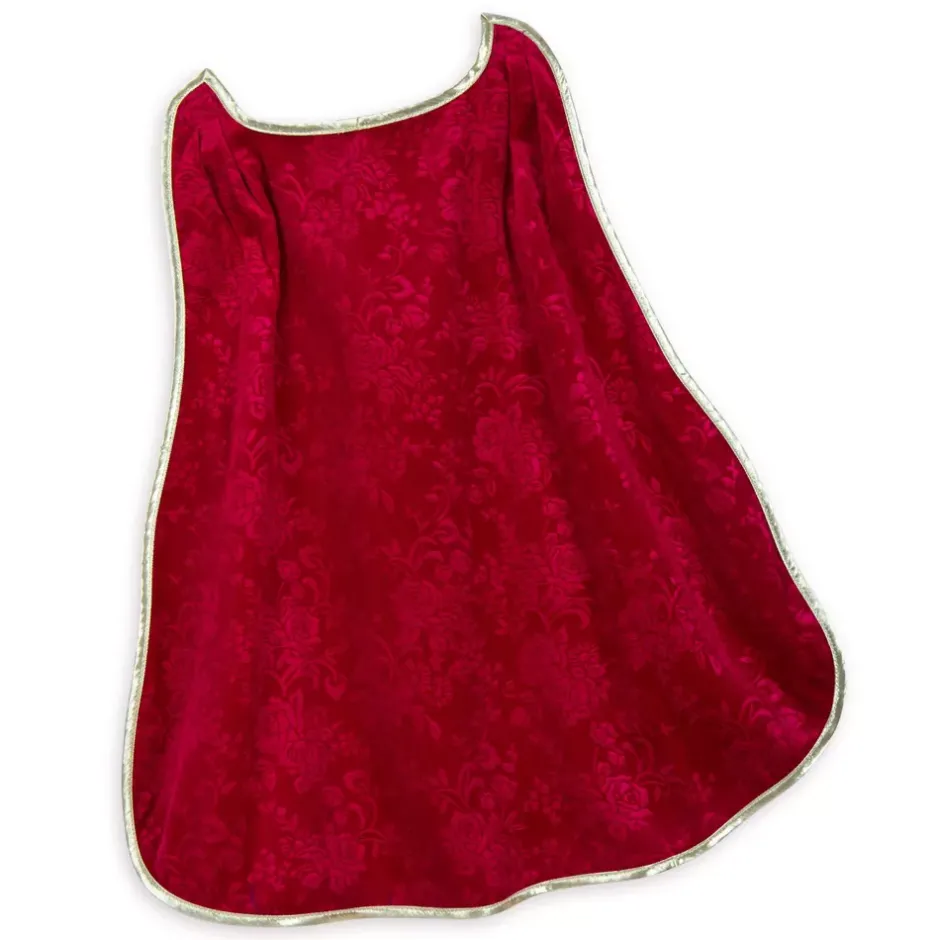 - Cape en velours rouge avec motif floral intégral gravé et attaches à scratch pour épaules