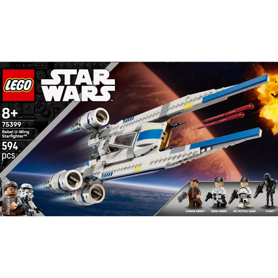 Les enfants font équipe avec Cassian Andor et K-2SO pour recréer des scènes de la saison 2 de Star Wars : Andor avec ce modèle de chasseur U-Wing rebelle à construire (75399). Un cadeau ludique pour les garçons, les filles et tous passionnés de Star Wars âgés de 8 ans et plus, le chasseur U-Wing en briques LEGO dispose d’une fonction d’ailes pivotantes permettant de passer du mode d’atterrissage à la formation emblématique en « V » pour le vol, ainsi que de deux fusils à ressort. La verrière de l’habitacle se libère en appuyant sur un levier, et il y a un compartiment qui s’ouvre pour les passagers et le chargement.Cet ensemble LEGO Star Wars comprend trois figurines : Cassian Andor, Dedra Meero et un agent tactique du BSI, ainsi qu’une figurine de droïde LEGO K-2SO et d’autres accessoires assortis pour stimuler l’imagination des enfants. Rendez l’expérience créative encore plus amusante grâce à l’application LEGO®Builder, qui permet d’agrandir et de faire pivoter une version numérique en 3D du chasseur Star Wars au fur et à mesure de la construction.